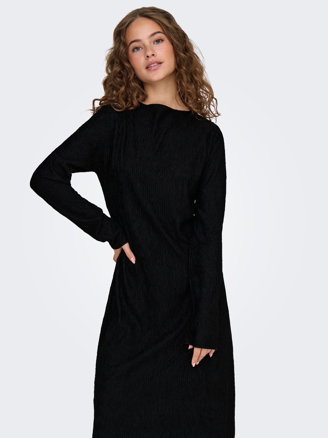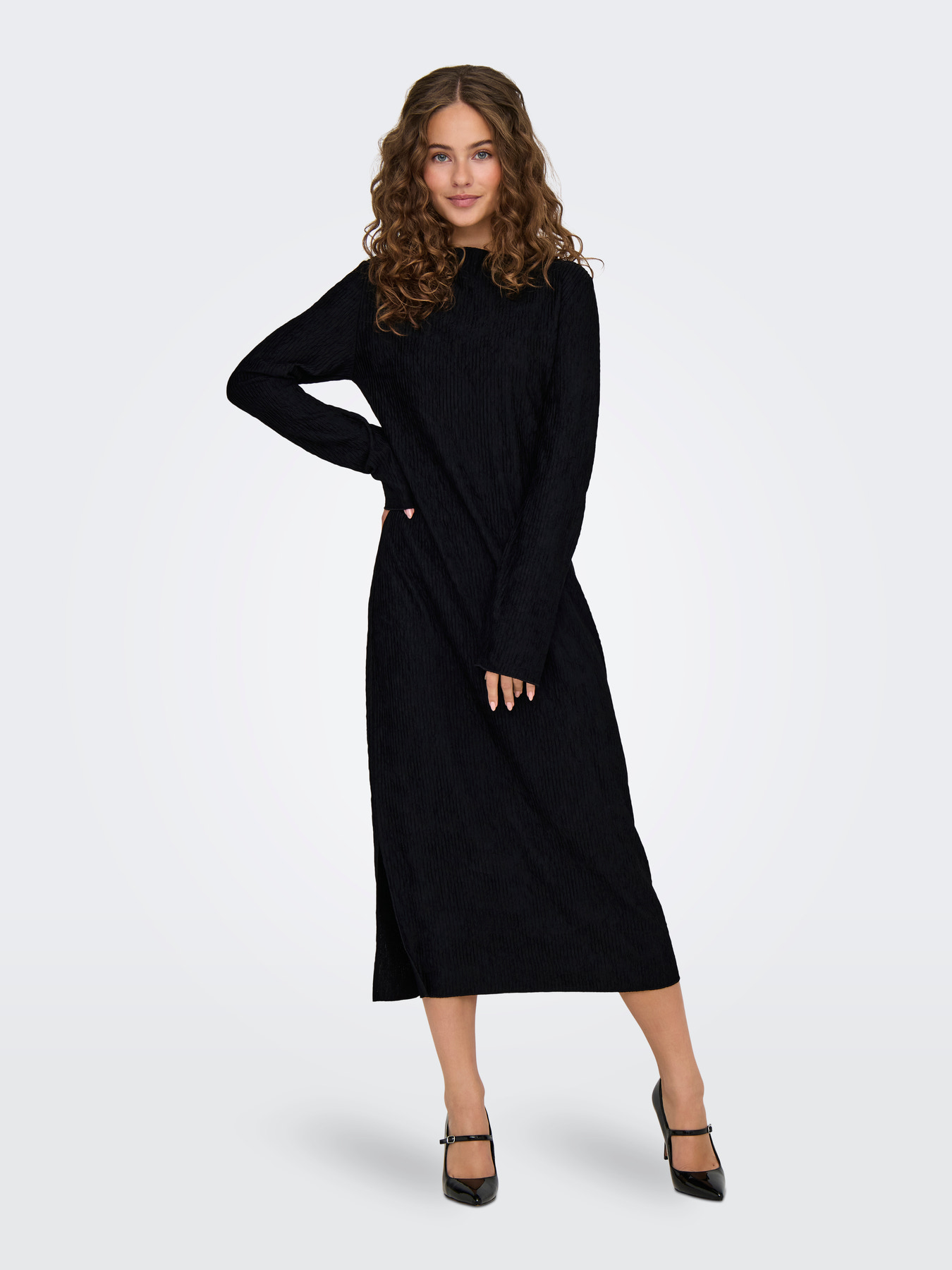 - Rund hals for et klassisk udtryk - Lange ærmer - Midi længde for en elegant silhuet - Sideslids, der tilføjer et trendy touch - Regular fit, der passer til enhver kropsform